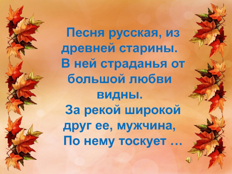 Слайд 14Песня русская, из древней старины.