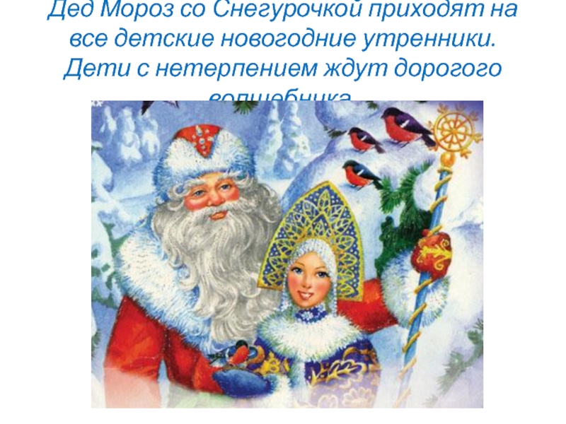 Слайд 13Дед Мороз со Снегурочкой приходят на все детские новогодние утренники. Дети