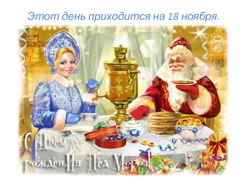 Слайд 16 18 ноября Дед Мороз и Снегурочка встречают огромное количество гостей,