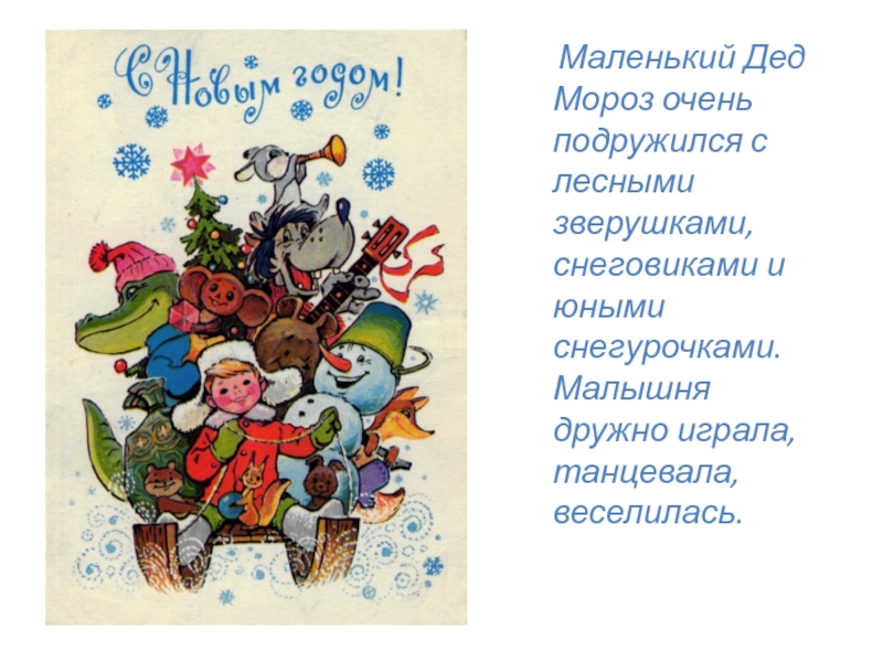 Слайд 11 Маленький Дед Мороз очень подружился с лесными зверушками,