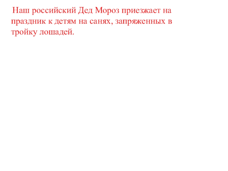 Наш российский Дед Мороз приезжает на праздник к детям на санях, запряженных в тройку лошадей.