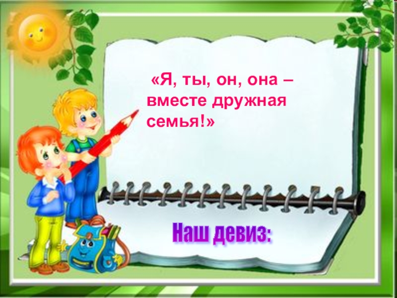 Наш девиз: «Я, ты, он, она – вместе дружная семья!»