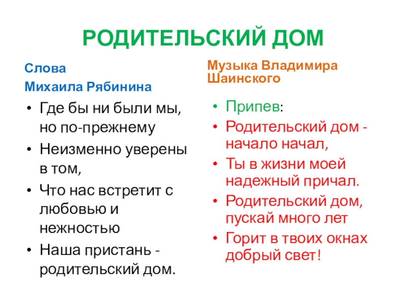Родительский дом - начало начал,