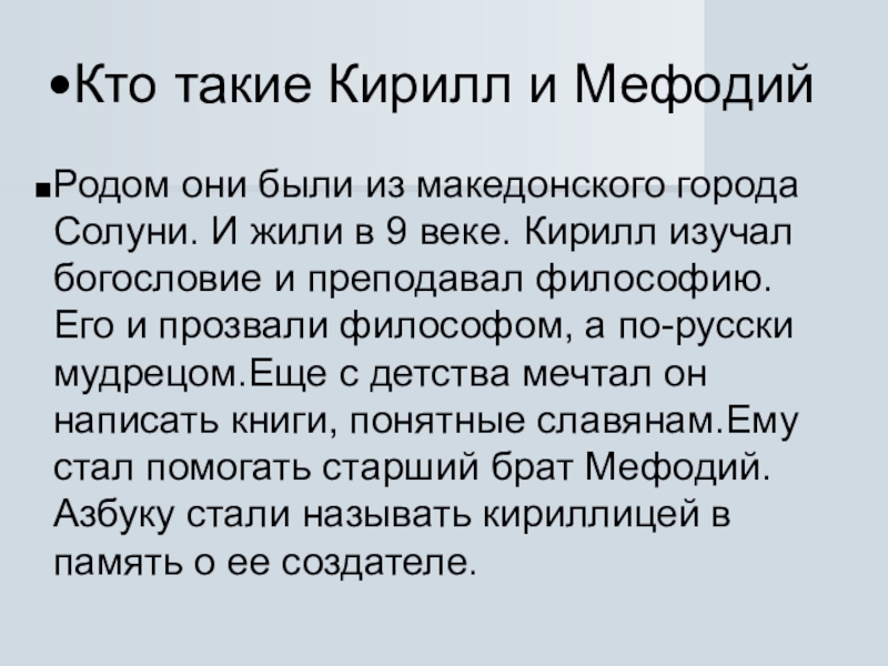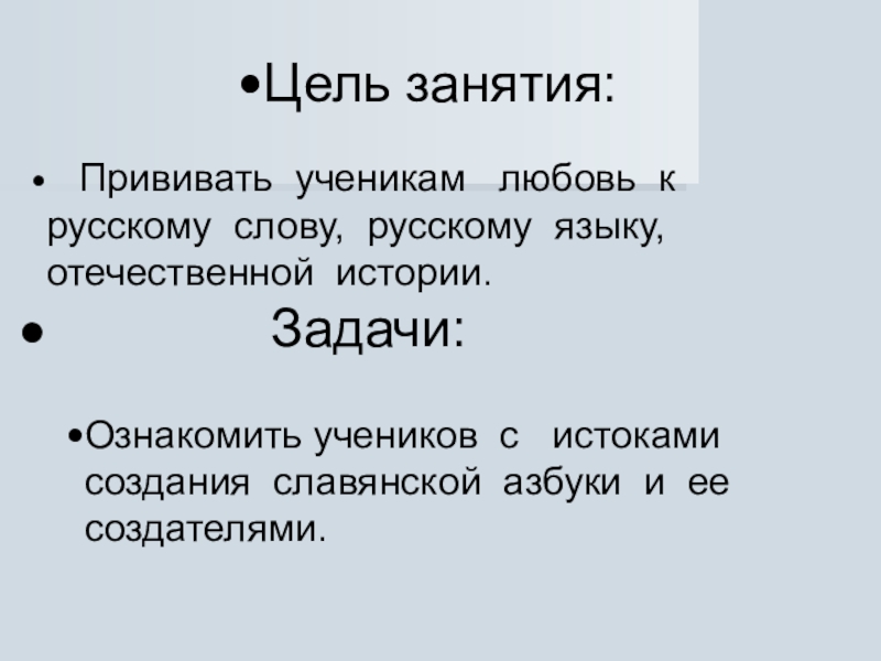 Ознакомить учеников с истоками создания славянской азбуки и ее создателями.