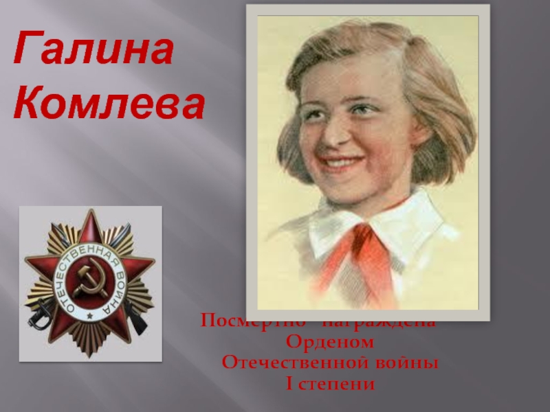 Галина  КомлеваПосмертно  награждена Орденом Отечественной войны I степени