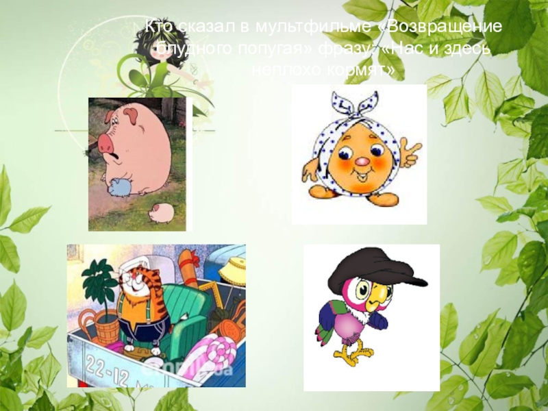 Слайд 5Кто сказал в мультфильме «Возвращение блудного попугая» фразу: «Нас и здесь