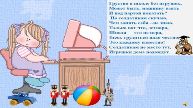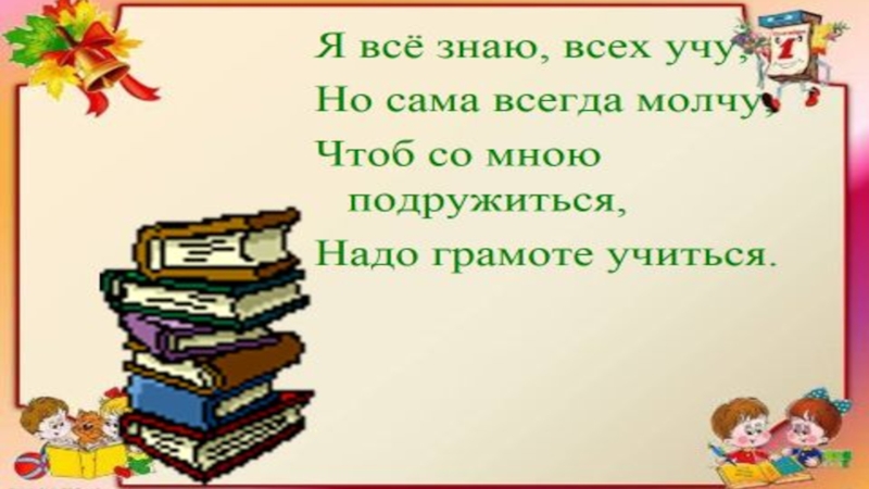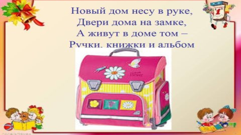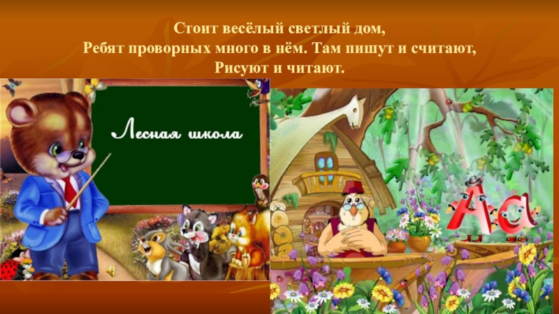 Стоит весёлый светлый дом, Ребят проворных много в нём. Там пишут и считают, Рисуют и читают.