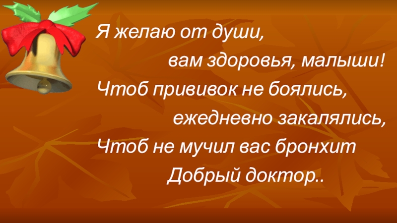 Я желаю от души,         вам здоровья, малыши!Чтоб прививок не