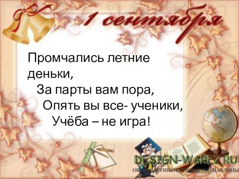 Это сайт презентаций, где можно хранить и обмениваться своими презентациями, докладами, проектами, шаблонами в формате PowerPoint с другими пользователями. Мы помогаем школьникам, студентам, учителям, преподавателям хранить и обмениваться учебными материалами.