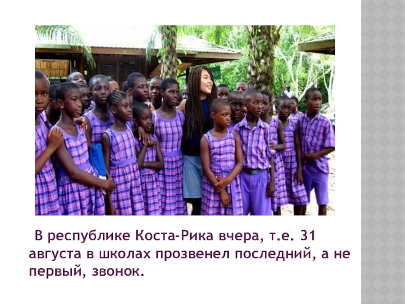 Слайд 4 В республике Коста-Рика вчера, т.е. 31 августа в школах