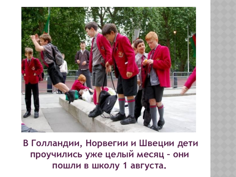 Слайд 6 В Голландии, Норвегии и Швеции дети проучились уже целый месяц