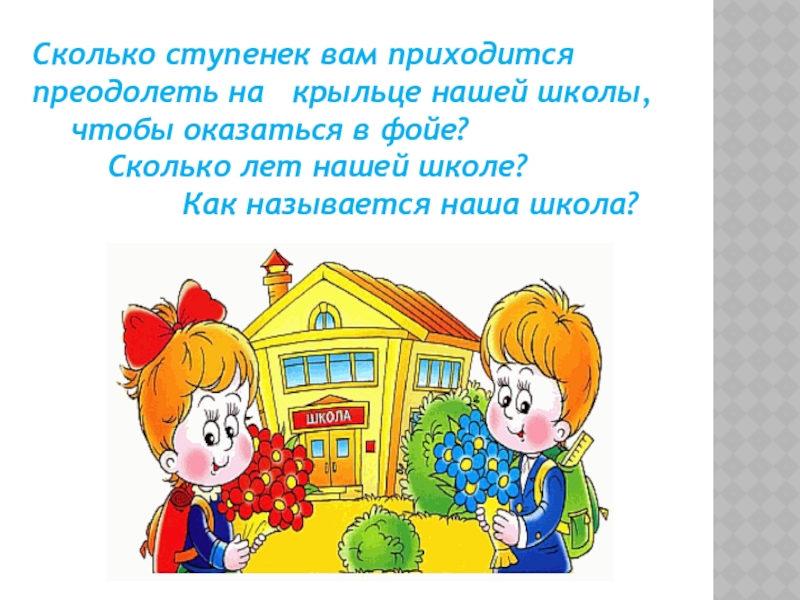 Слайд 11Сколько ступенек вам приходится преодолеть на крыльце нашей школы,