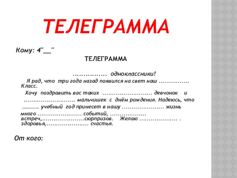 Я рад, что три года назад появился на свет наш ................ Класс.