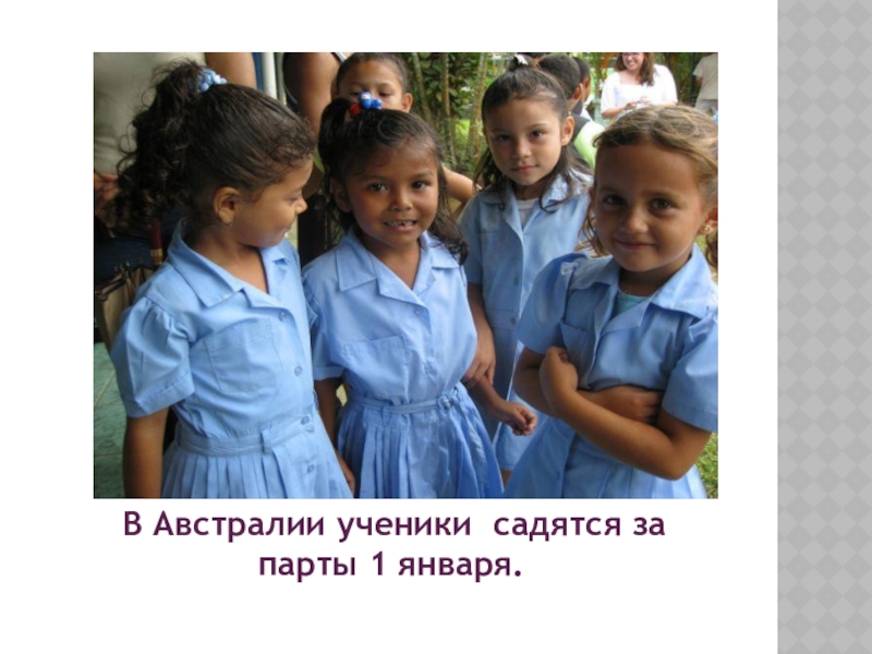 Слайд 3 В Австралии ученики садятся за парты 1 января.