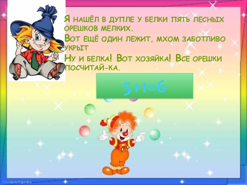Я НАШЁЛ В ДУПЛЕ У БЕЛКИ ПЯТЬ ЛЕСНЫХ ОРЕШКОВ МЕЛКИХ.ВОТ ЕЩЁ ОДИН ЛЕЖИТ, МХОМ ЗАБОТЛИВО УКРЫТНУ И