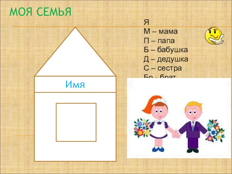 МОЯ СЕМЬЯИмяЯМ – мамаП – папаБ – бабушкаД – дедушкаС – сестраБр - брат