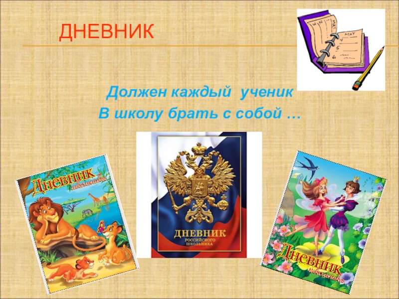 ДНЕВНИКДолжен каждый ученикВ школу брать с собой …