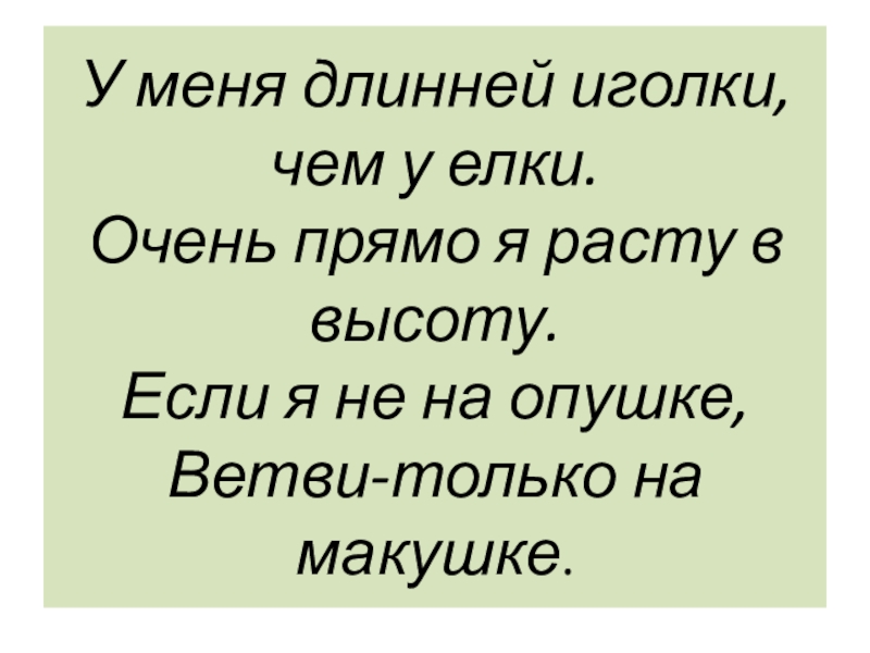 Слайд 4У меня длинней иголки, чем у елки. Очень прямо я расту в