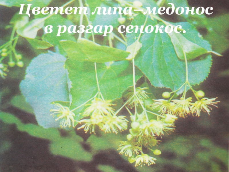 Слайд 5Цветет липа–медонос в разгар сенокос.