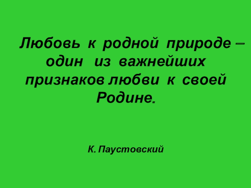 Любовь к родной природе – один  из важнейших признаков любви к своей Родине.