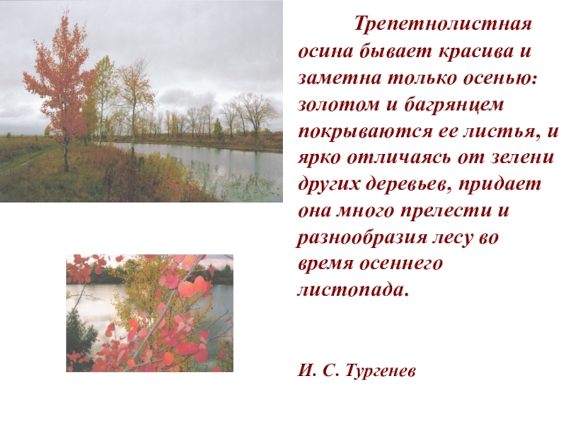 Слайд 6 Трепетнолистная осина бывает красива и заметна только