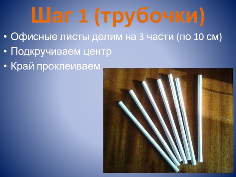 Слайд 3Шаг 1 (трубочки)