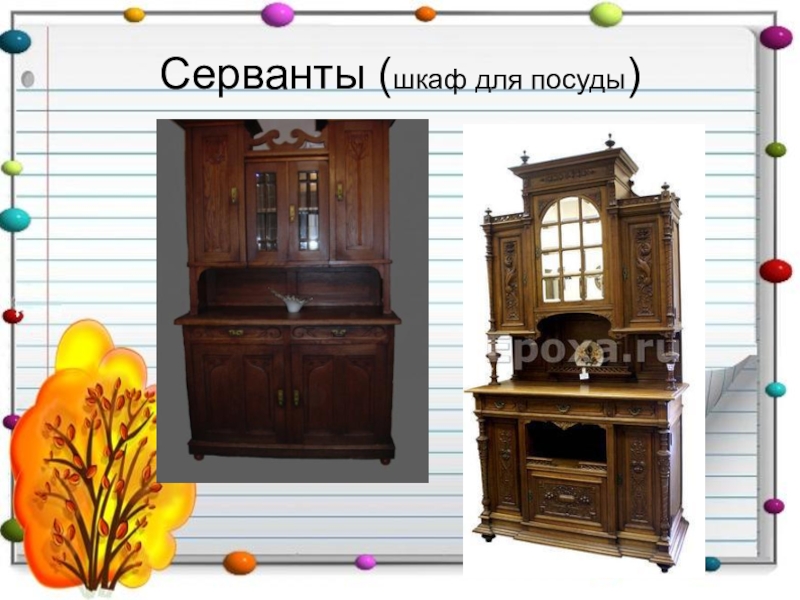 Слайд 17Серванты (шкаф для посуды)