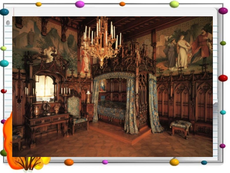 Слайд 13 в замках европейской знати появилась первая мягкая мебель. Сначала стулья