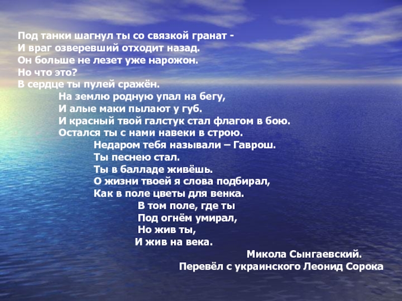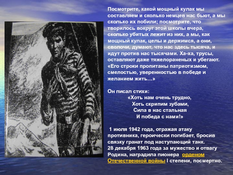 Слайд 9Под танки шагнул ты со связкой гранат -