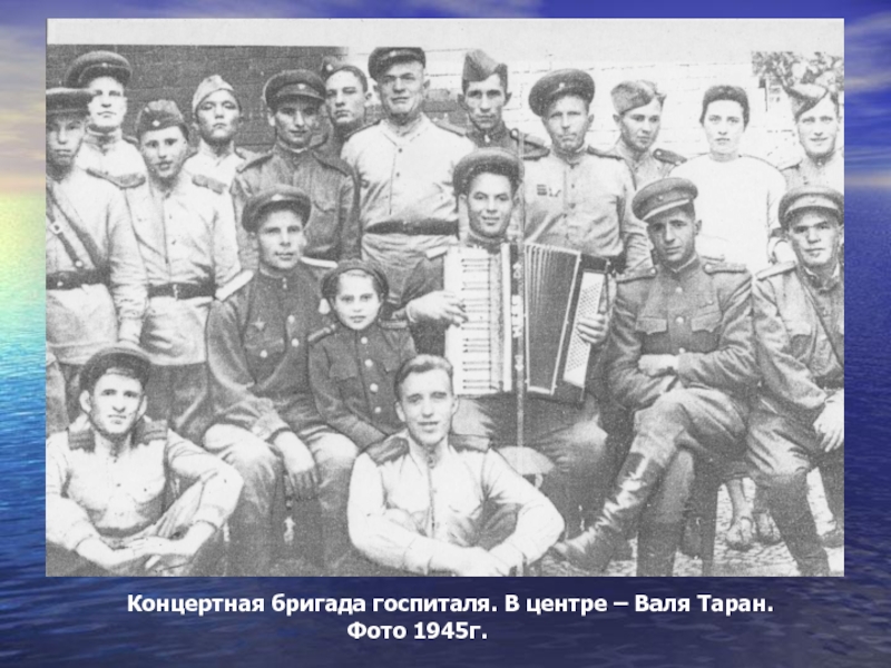 Слайд 54 Концертная бригада госпиталя. В центре –