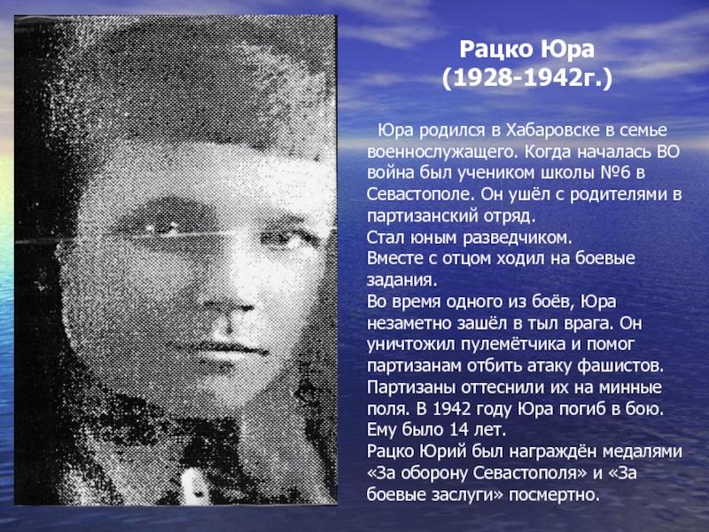воспитали сына в духе патриотизма. Юный разведчик Севастопольского партизанского отряда. Вилору было 16 лет.