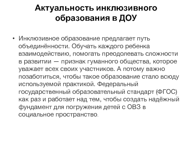 Слайд 9Актуальность инклюзивного образования в ДОУ