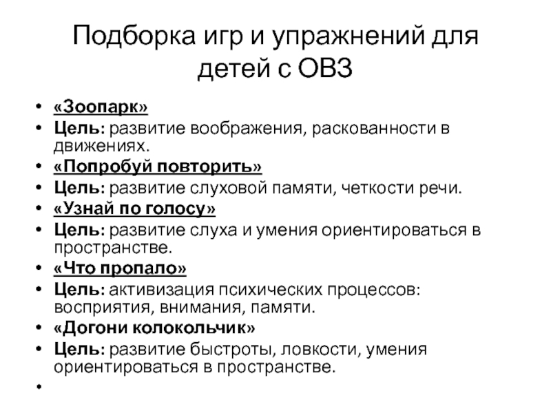 Слайд 16Подборка игр и упражнений для детей с ОВЗ