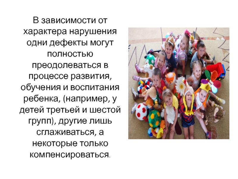 Слайд 6В зависимости от характера нарушения одни дефекты могут полностью преодолеваться в