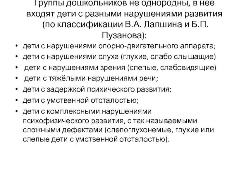 Слайд 5Группы дошкольников не однородны, в нее входят дети с разными нарушениями