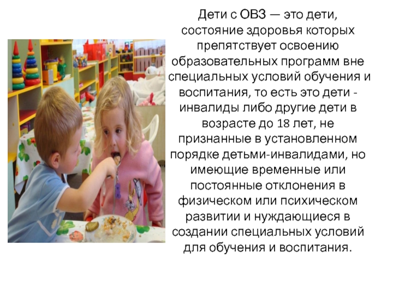Слайд 4Дети с ОВЗ — это дети, состояние здоровья которых препятствует освоению