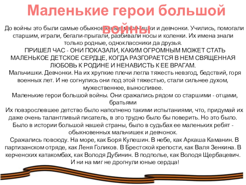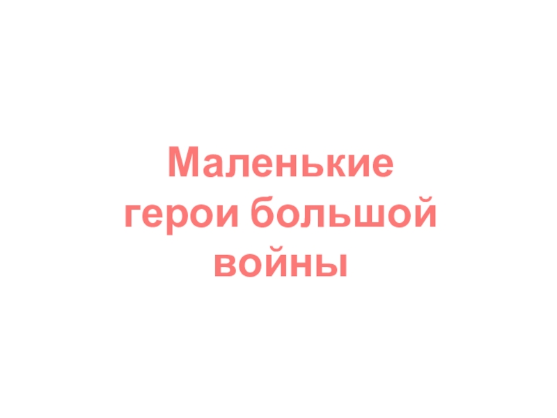 Маленькие герои большой войны