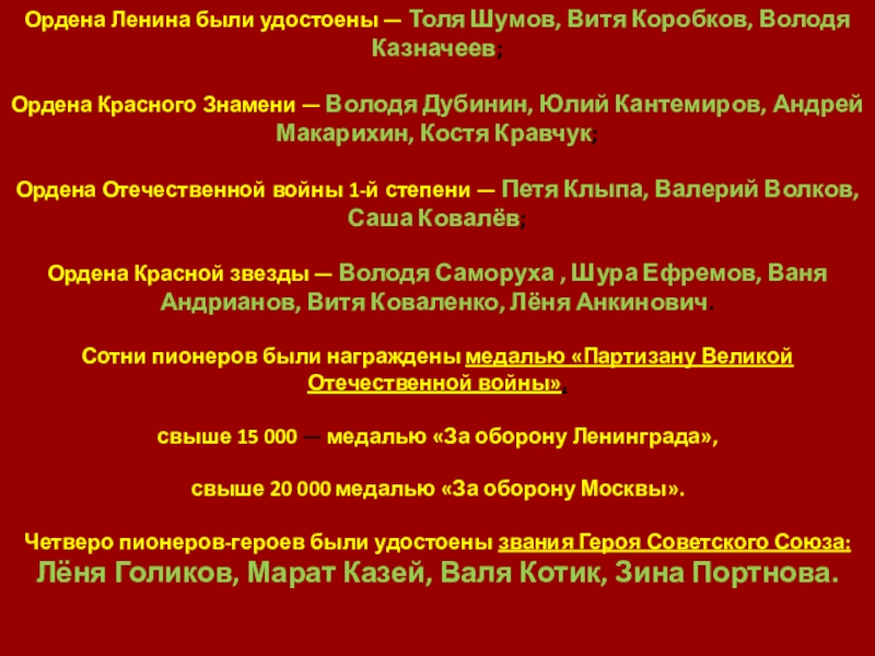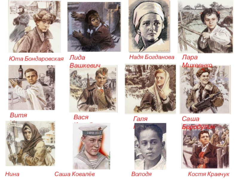 Сражались повсюду. На море, как Боря Кулешин. В небе, как Аркаша Каманин. В партизанском отряде, как Леня Голиков. В Брестской крепости, как Валя Зенкина. В керченских катакомбах, как Володя Дубинин. В подполье, как Володя Щербацевич.
