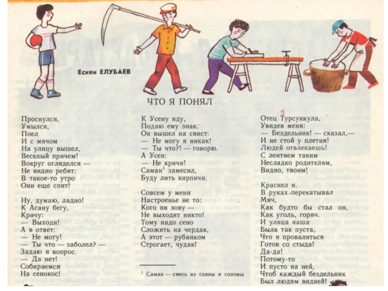 русский язык. Вышла она в Алма-Ате в 1962 году. Сборник стихотворений «Инабат-виноват» состоял как бы из двух книжек под одной обложкой: одна – для малышей, другая - для тех, кто постарше.