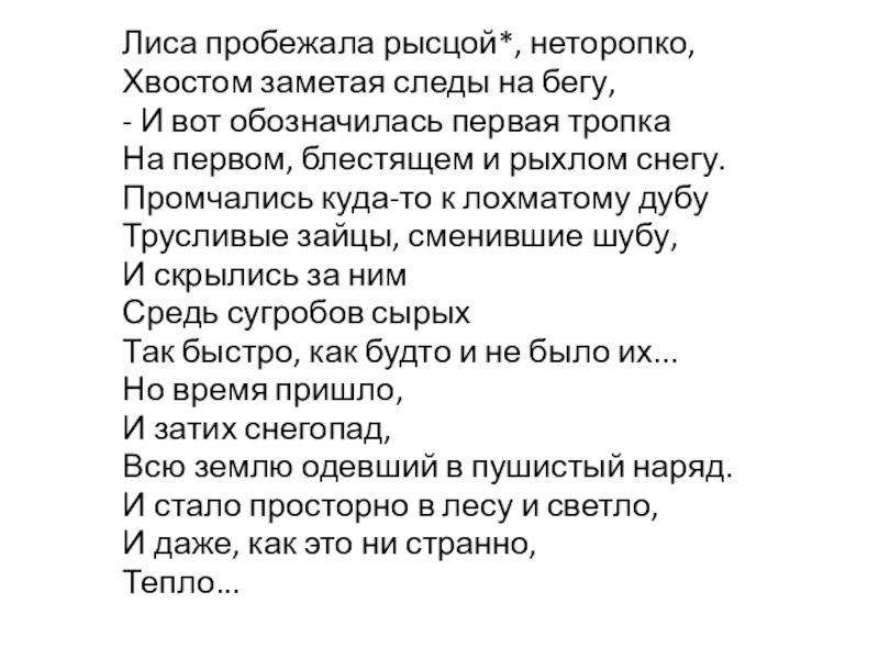 Слайд 45Лиса пробежала рысцой*, неторопко,