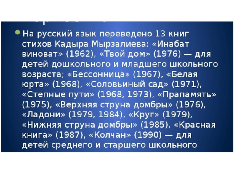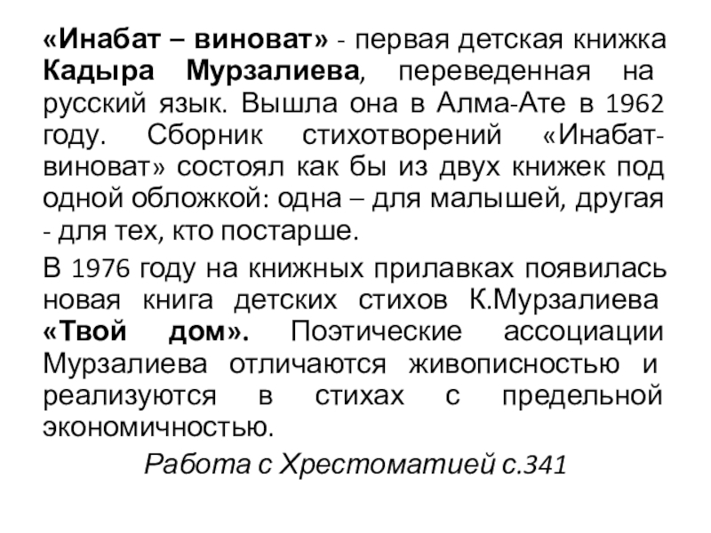 Слайд 4«Инабат – виноват» - первая детская книжка Кадыра Мурзалиева, переведенная на