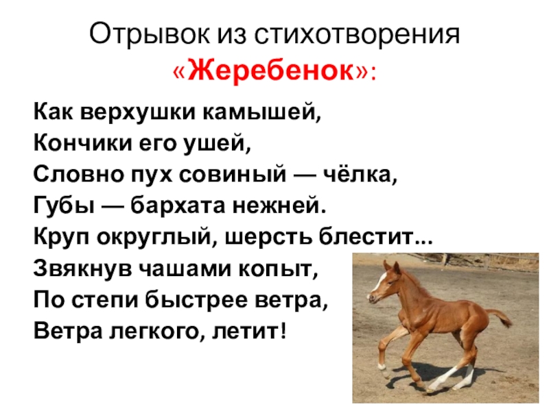 Слайд 8Отрывок из стихотворения «Жеребенок»: