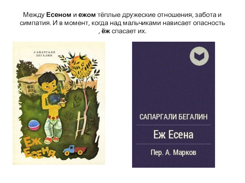 Слайд 10Между Есеном и ежом тёплые дружеские отношения, забота и симпатия. И в момент, когда над