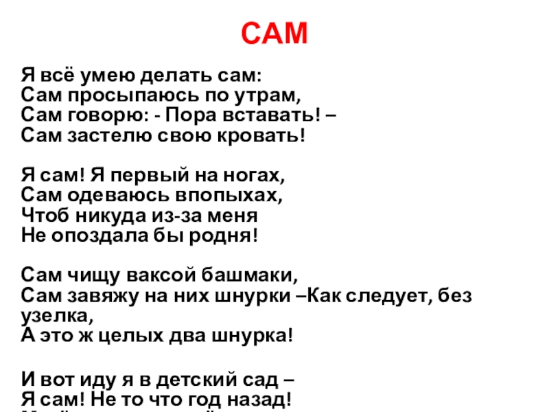 Сам завяжу на них шнурки –Как следует, без узелка,