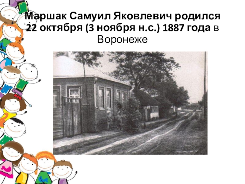 Слайд 4Маршак Самуил Яковлевич родился 22 октября (3 ноября н.с.) 1887 года в