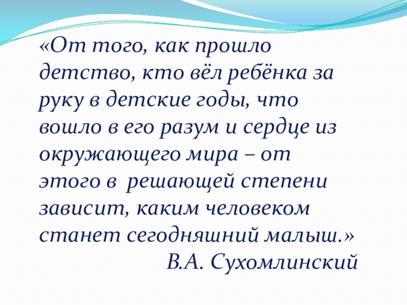 Слайд 3«От того, как прошло детство, кто вёл ребёнка за руку в