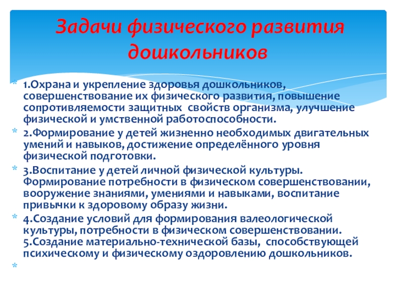 Задачи физического развития дошкольников