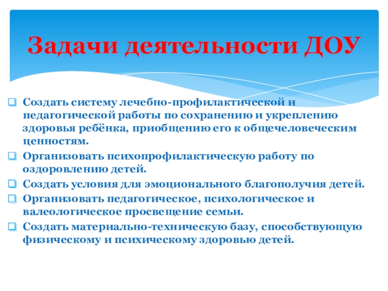 Задачи деятельности ДОУ