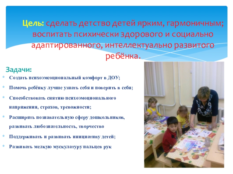 Создать психоэмсоциональный комфорт в ДОУ;