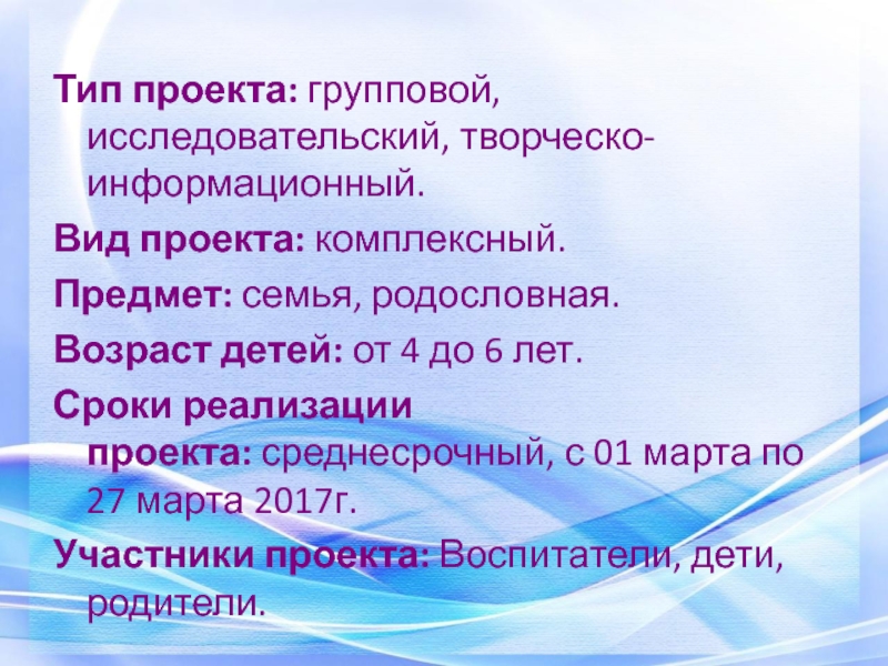 Тип проекта: групповой, исследовательский, творческо-информационный.